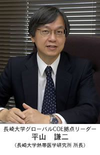 私は2008年から2012年まで5年計画で進められるグローバルCOEのリーダーを務めることになりました熱帯医学研究所長の平山です。私の専門は、寄生虫学・免疫遺伝学で、これまでヒトが感染症にかかったあと重症化したりあるいは簡単に回復したりするのがなぜなのか研究してきました。たとえ同じように新型インフルエンザウイルスにさらされたとしても、決して死亡率100%にはなりません。かならず生き残るヒトがいるはずです。どうして「いるはずです」などと言えるのでしょうか。それには大きく二つの理由があります。