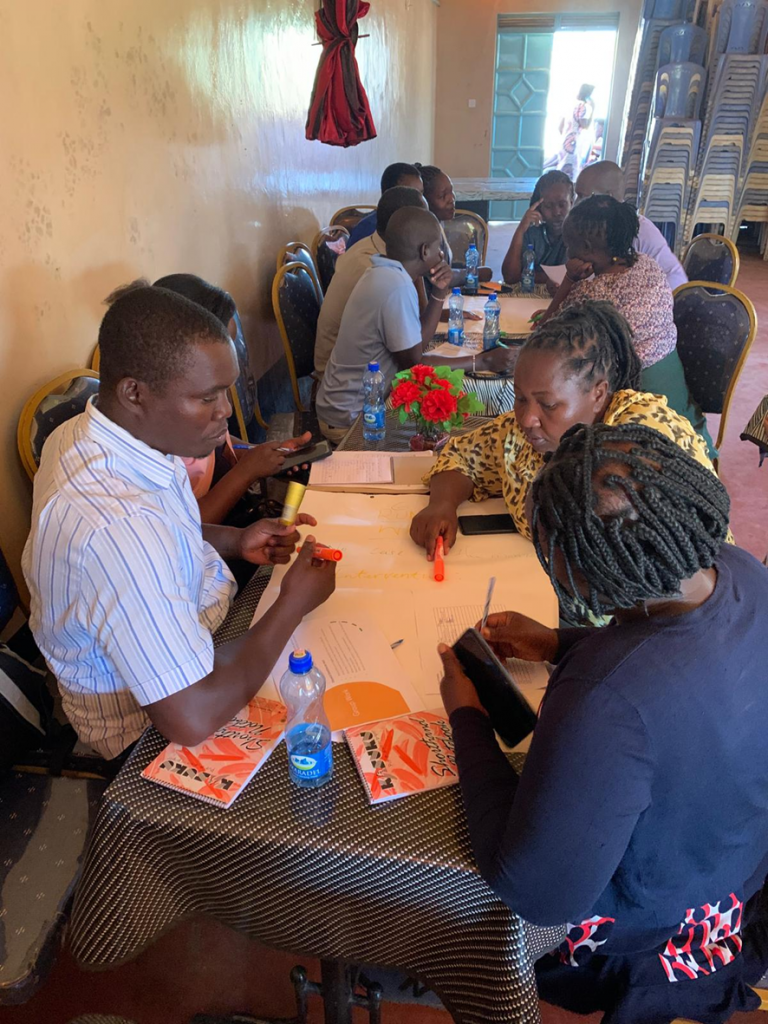Ongoing group discussion by the Ndhiwa Sub-County CHAs, PHOs on the sustainability of the project.