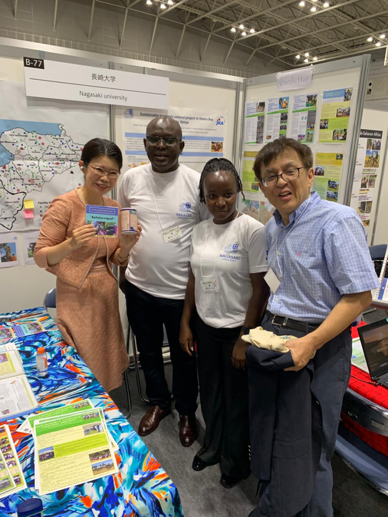 KEMRI(ケムリ・ケニア医学研究所)のエリヤ・ソンゴク所長(中央)が、同僚と共に当ブースを訪問されました。
