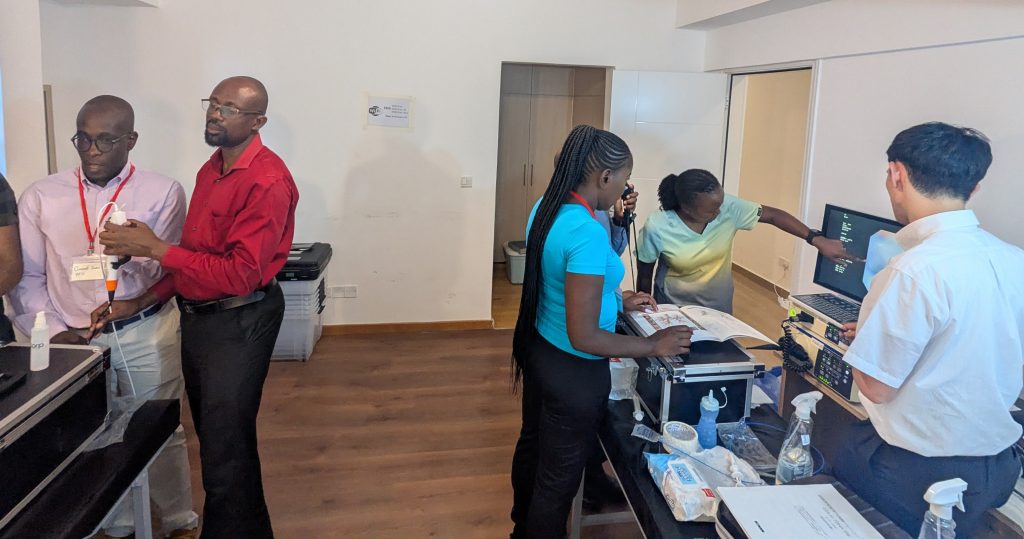参加者は、Moi Teaching and Referral Hospital(Moi)、Jaramogi Oginga Odinga Teaching and Referral Hospital(JOORT)、Meru Teaching and Referral Hospital、Mama Lucy Kibaki Hospitalから集まり、医師4名、看護師6名、医療工学技士3名が研修を受講した。