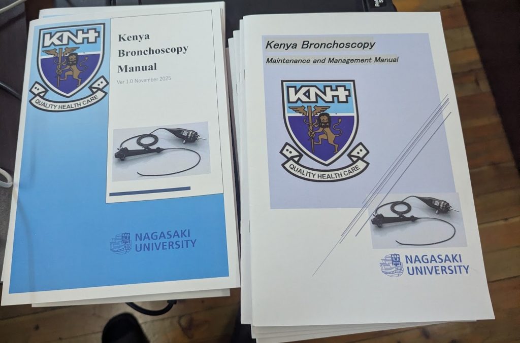本プロジェクトでは、2025年9月にKNHから5名を日本へ、同年12月に長崎大学病院から8名をケニアへ招聘し、超音波気管支鏡、気管支鏡看護、機器メンテナンスについて日本人専門家から研修を行った。あわせて、ケニア国内で継続的に活用できる教材として、気管支鏡マニュアル2冊およびマニュアル動画8本を共同で作成した。