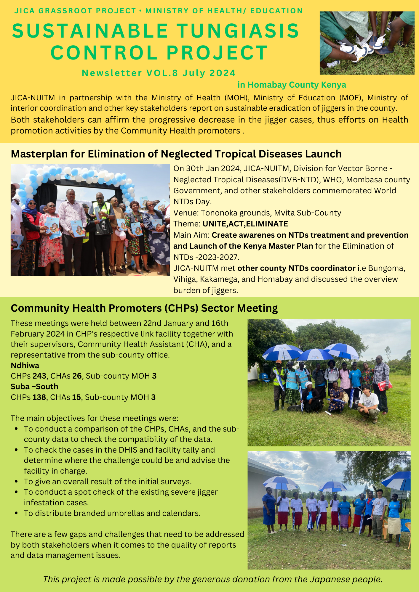 JICA-NUITMは、2025年2月25日にスナノミ症キャンペーンを開催しました。このキャンペーンは、スナノミ症の蔓延が97%減少した時期に行われます。 保…