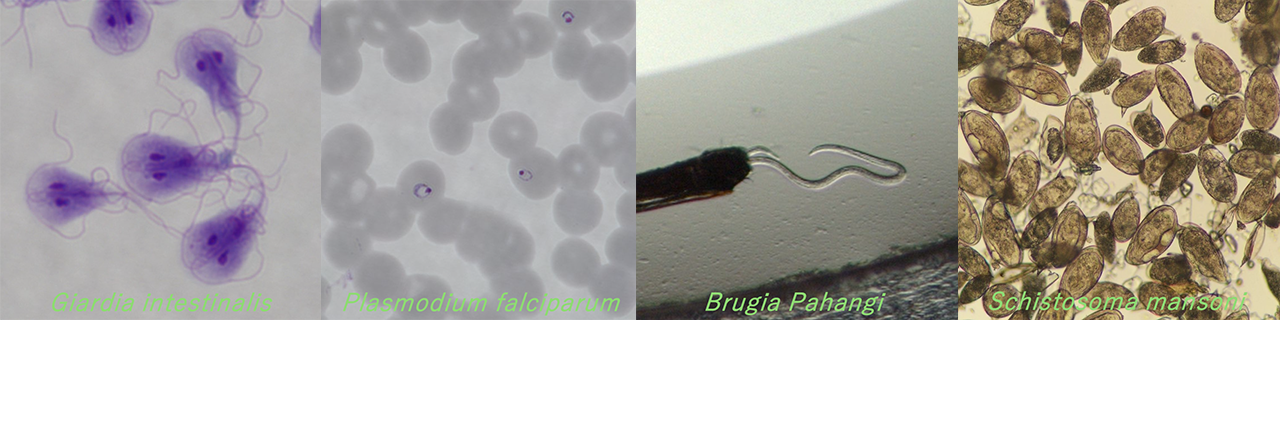 マンソン住血吸虫やフィラリア2種を保有している。凍結保存法が確立されていないため、継代することで維持している。 維持している蠕虫種- Brugia malayi